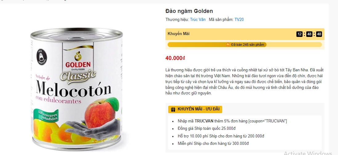 Đào ngâm đóng hộp Golden
